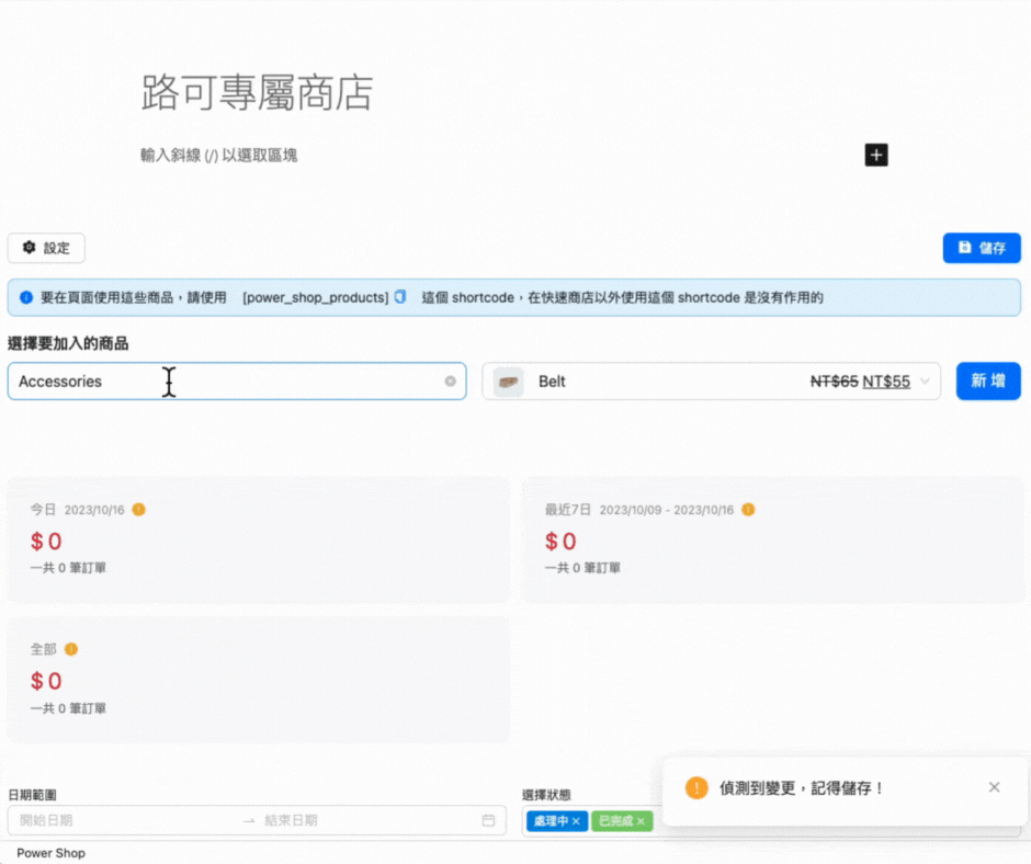 在頁面上加入POWER SHOP短碼